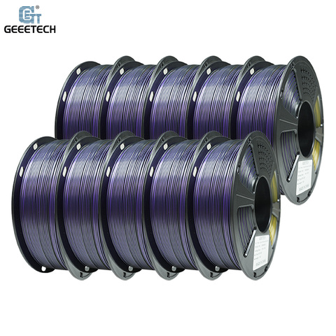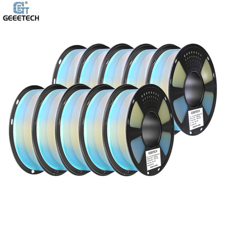 Geeetech Tri-Color Co-extrusie Magic PLA Filament 1.75mm Diameter 335m Lengte Glansrijk Zijdeachtig Geleidelijke Kleurverandering 10 Rollen 1KG Spoel